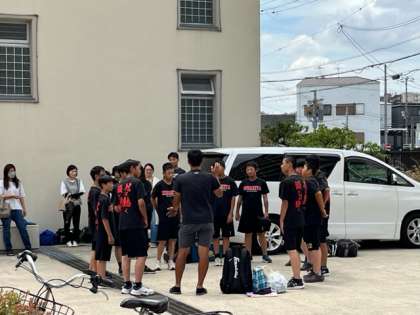 男子ソフトボール部が香川県で行われる、全国中学校ソフトボール大会に参加するため、学校を出発しました。