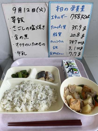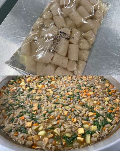 今日の含め煮に、糸こんにゃくを綱のように束ねた、つなこんにゃくを使用しています。