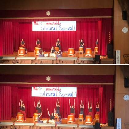 食品加工センターを題材とした、命の大切さと部落差別について考える劇と迫力のある和太鼓の演奏を発表しました。