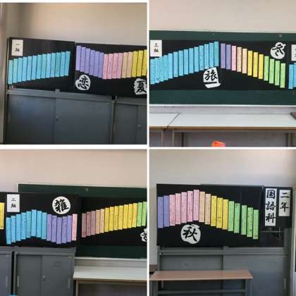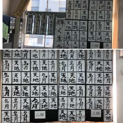 1年生は授業で取り組んだ「天地」「名月」書道作品を展示しました。