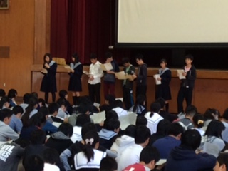 学年学級代表会や各委員会から、活動方針や活動内容を発表しました。そして、みんなが協力して、より良い学校生活を送れるようにしょうと、各代表者から話がありました。