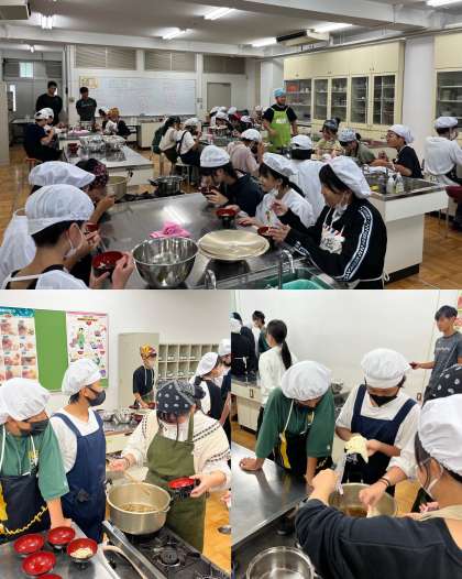 昆布だし、かつおだし、合わせだしの味見をし、だし本来の味を味わいました。