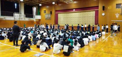 本日から新しい生徒会、学級役員に代わり、後期がスタートしました。朝に全校集会で認証式をして、放課後に委員会を行いました。新しいメンバーで新しい委員長を決めて、これから学校をより良くするために活動していきます。