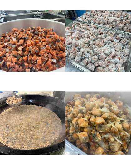 2,1を砂糖、塩、米酢、リンゴ酢、オリーブ油、ワインで味付けする。