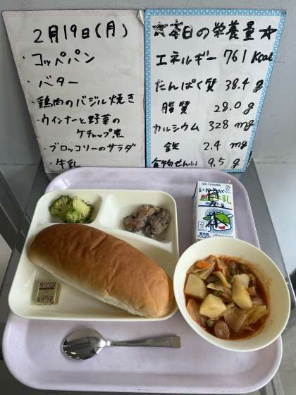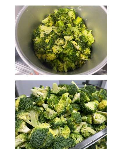 本日の給食では、砂糖、こしょう、りんご酢、しょうゆ、綿実油でドレッシングを作り、ブロッコリーと和えて、ブロッコリーサラダにしました。