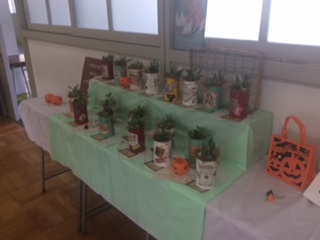 社会見学で製作した作品や多肉寄せ植えなどを展示しました。また、個人の作品も出展していただきました。