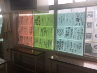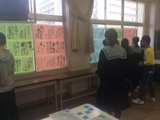 1年の自作詩。2年暑中見舞い・漢字宝島。3年自作の俳句を展示しました。