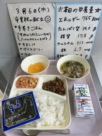 3年生の給食回数は残り2回です。最後までしっかり食べましょう。