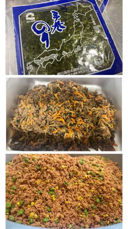 (牛肉のコチジャン炒め、さけのカラフルそぼろ)