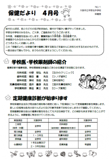 保健だより4月号を配布しました。