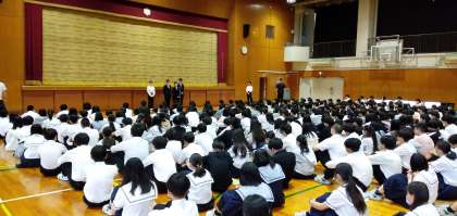 本日で教育実習が終わりました。全校集会で実習生から最後の挨拶がありました。