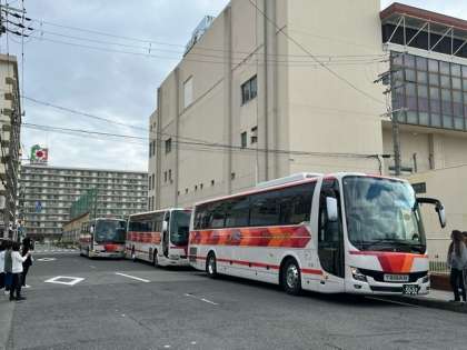 7時30分バスが学校を出発しました。お見送りに来ていただいた保護者の皆さまありがとうございました。生徒の皆さん、気をつけて行ってらっしゃい!