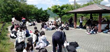 1時間遅れで梓川サービスエリアに到着しました。昼食をとり、ラフティング場所に向かいます。