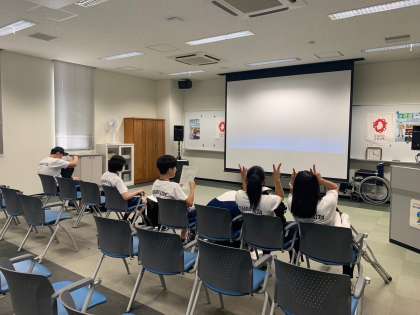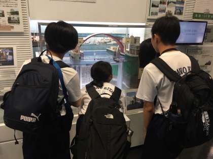 施設の中には、防災知識を学べる施設もあります!大迫力の映像で、津波の恐ろしさを学習しました!