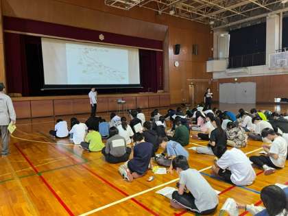 本日1限目、1年生は一泊移住の野外炊事とオリエンテーリングについての説明を受けました。