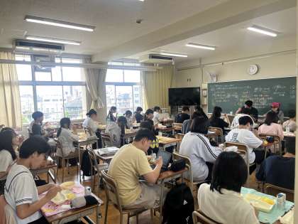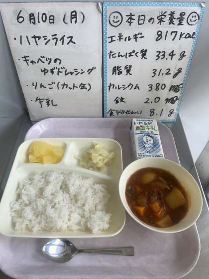 ハヤシライスは、小麦粉とサラダ油などで「ブラウンルウ」を作り、とろみをつけています。大阪市の給食では、米を粉にして作られる米粉(上新粉)でとろみをつけています。