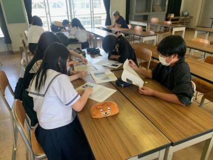 ?今日は、2、3年生のみの活動でしたが、「権利の熱気球」という資料を通して、班で話し合い活動を行いました。この取り組みで改めて、日本では普段の生活の中で人権が守られていることに気づくことができました。