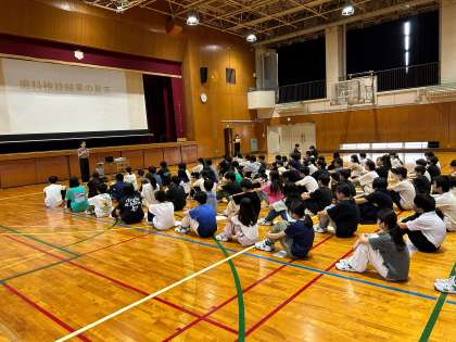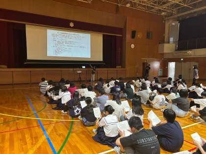 今週は各学年集会で歯科検診の結果を配り、保健室より歯科指導を行いました。