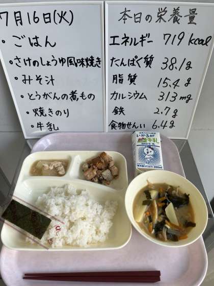 とうがんは、夏が旬の野菜です。夏に収穫したものを冬まで保存できることから、漢字で「冬瓜」と書きます。今日の給食では、煮ものに使用しました。