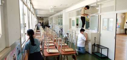 本日は各学年、集会と大清掃を行いました。写真は3年生の様子です。1学期を振り返り、たまった汚れもきれいにしました。明日は終業式です。