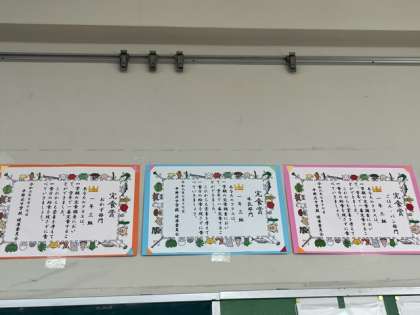健康委員会の生徒が毎日つけてくた、完食調査をもとに、よく食べたクラスには完食表彰状が送られました。
