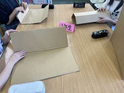3Rについて学び、ダンボールを切ったり、ちぎったり、丸めたりして、ダンボールをどのように活用するか考えました。