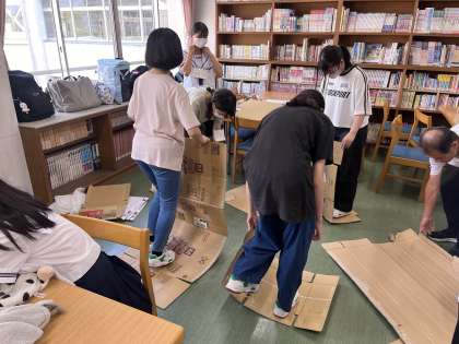 大洋紙器株式会社のデザイナーの方を講師にお招きし、ダンボールについて学びました。