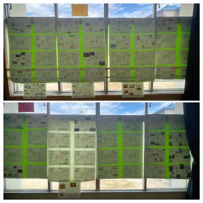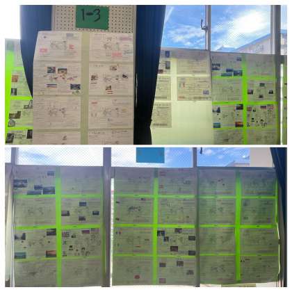 1年生は、世界の○○○についてを一人ひとりテーマに沿って調べ「オリジナル世界地図」を作成しました。