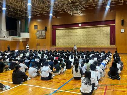 本日全校集会では、家庭科の新しい先生の紹介がありました。よろしくお願いします。