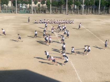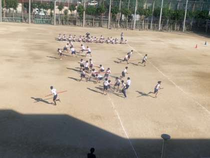 2年生は本日一時間目に、体育大会学年練習の「棒引き」の練習をしました。