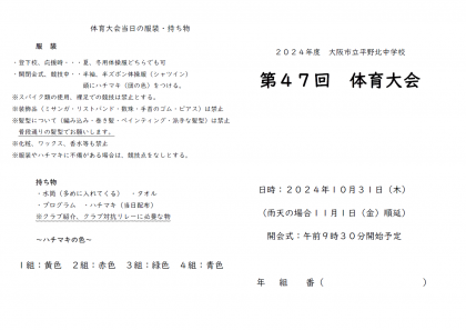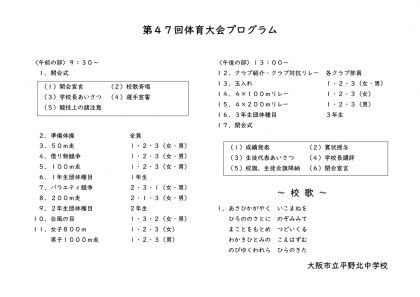本日生徒にも配付しました、明日の体育大会についてのプログラムをお送りします。