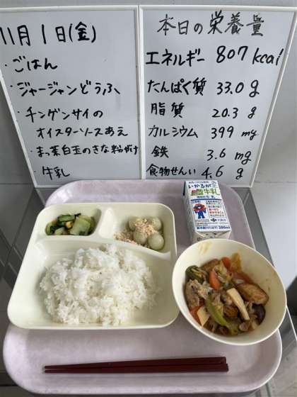 「ジャージャンどうふ」とは、漢字で「家常どうふ」と書き、家庭で常によく食べられているとうふ料理です。これに、中国料理でよく食べられているオイスターソースや、よく食べられている白玉だんごを組み合わせたそうです。