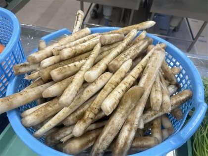 ごぼうは、主に根の部分を食べる野菜です。根が細くて長い種類のものがよく食べられています。ごぼうは、腸の働きをよくする食物繊維を多く含んでいます。