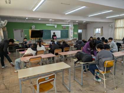 本日の四者活動の三千里の会では、工作に取り組みました。何を作っているかは秘密です。
