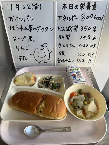 今日の給食では、「ふじ」と「ジョナゴールド」が出ていました。