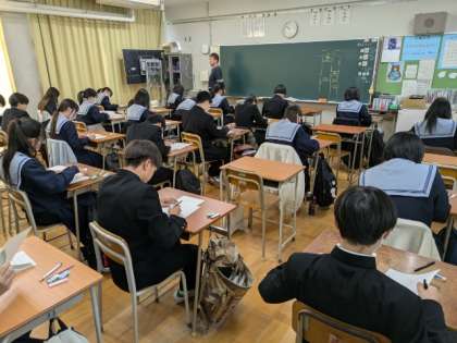 テスト2日目です。本日は国語、社会、音楽(3年生)のテストに取り組みました。