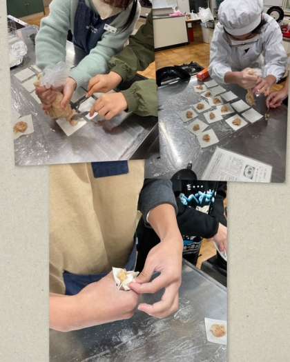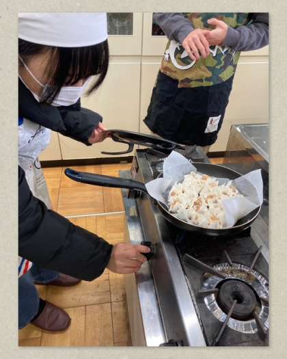 2年1組が今日、フライパンでシューマイの調理実習を行いました。