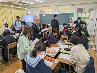 本日の研究授業の様子です。英語と国語の授業を教員全員で見学し、放課後教育委員会の先生とともに研究協議を行いました。