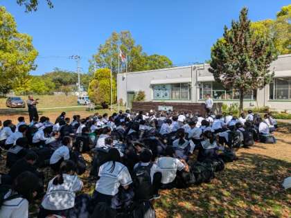 信太山の宿舎に到着しました。今から体育館で入所式です。