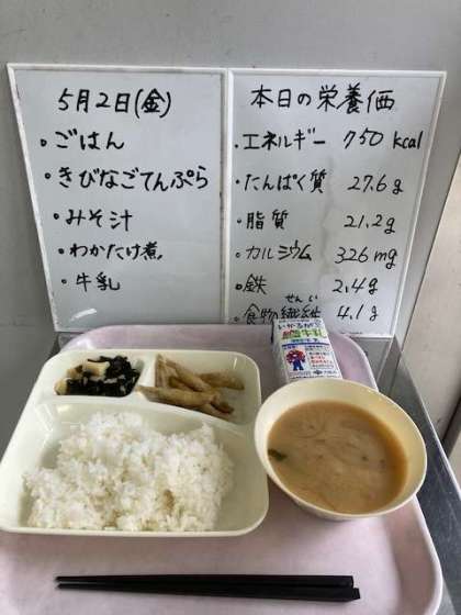 大阪府では、泉州地域(岸和田市、貝塚市、和泉市)や島本町などの山間部などで、たけのこが生産されています。今日の「わかたけ煮」は大阪産のたけのこを使用しています。