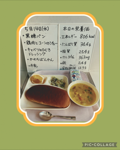 5/14(水) 給食 鶏肉とコーンのシチュー