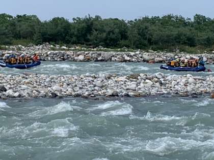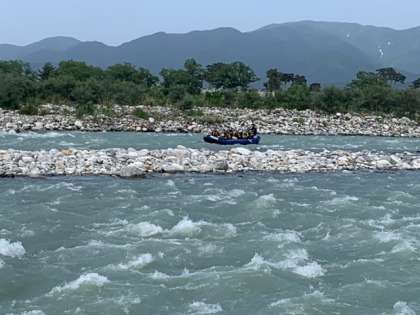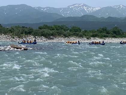 ラフティング活動中です。みんなで協力してすすんでいます!