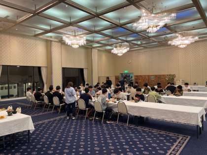 夕食前に立山国際ホテルでの入館式が行われました。修学旅行委員の人がしっかり挨拶してくれました。その後、立山国際ホテルの代表の方に挨拶をしていただきました。