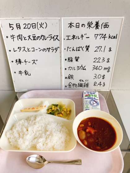 5/20(火) 給食 牛肉と大豆のカレーライス
