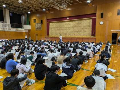 本日、生徒総会を行い、前期の各委員会、四者活動の方針を全校生徒で確認しました。
