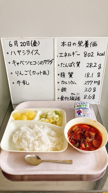 ハヤシライスに、ラッキーにんじん(ハートの形のもの)が入っていて、入っていた人は嬉しそうでした(^^)