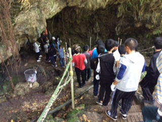 14:15 ガマ見学です。ガイドさんから、当時の凄まじい様子を伺うことができました。