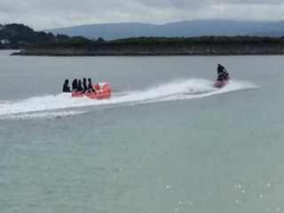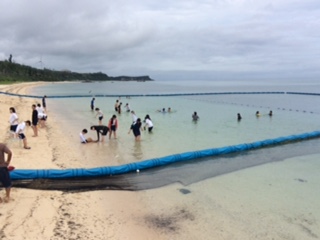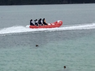 マリンスポーツ体験が始まりました。沖縄の海で、 楽しんでいます。