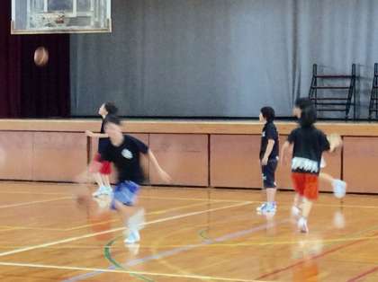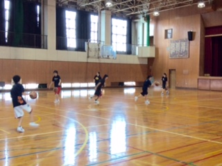 女子バスケットボール部。ブロック大会の勝利を目指して、練習中です。シュート1本!
