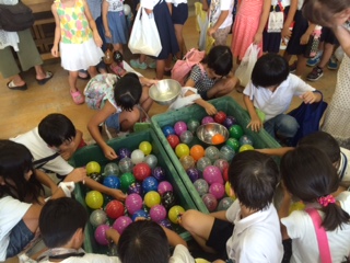 平野5校が、工夫をこらした、遊びコーナーで、楽しく交流をしました。